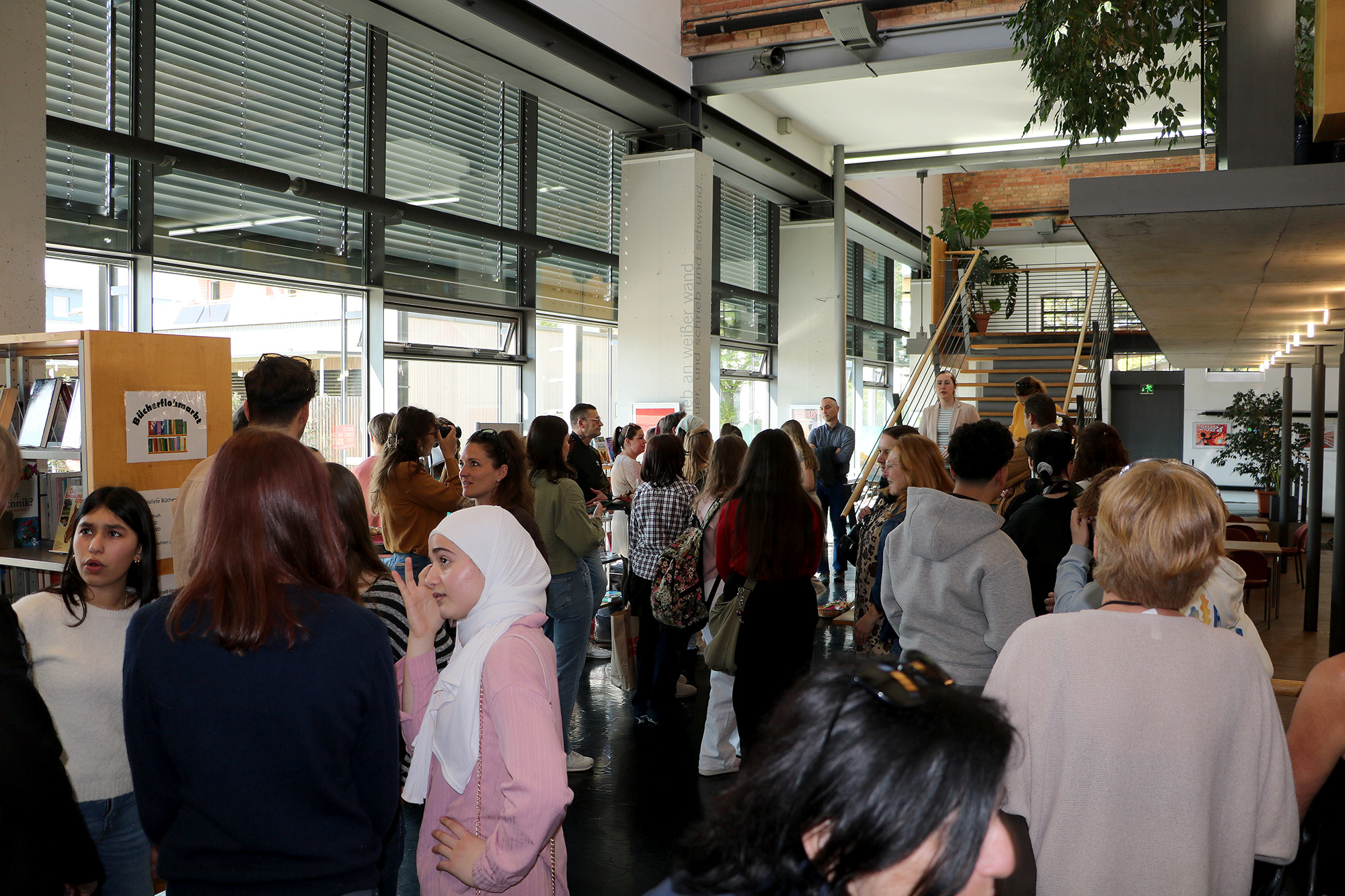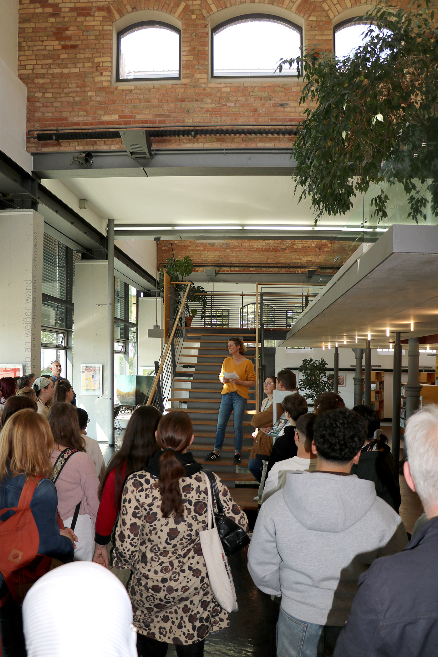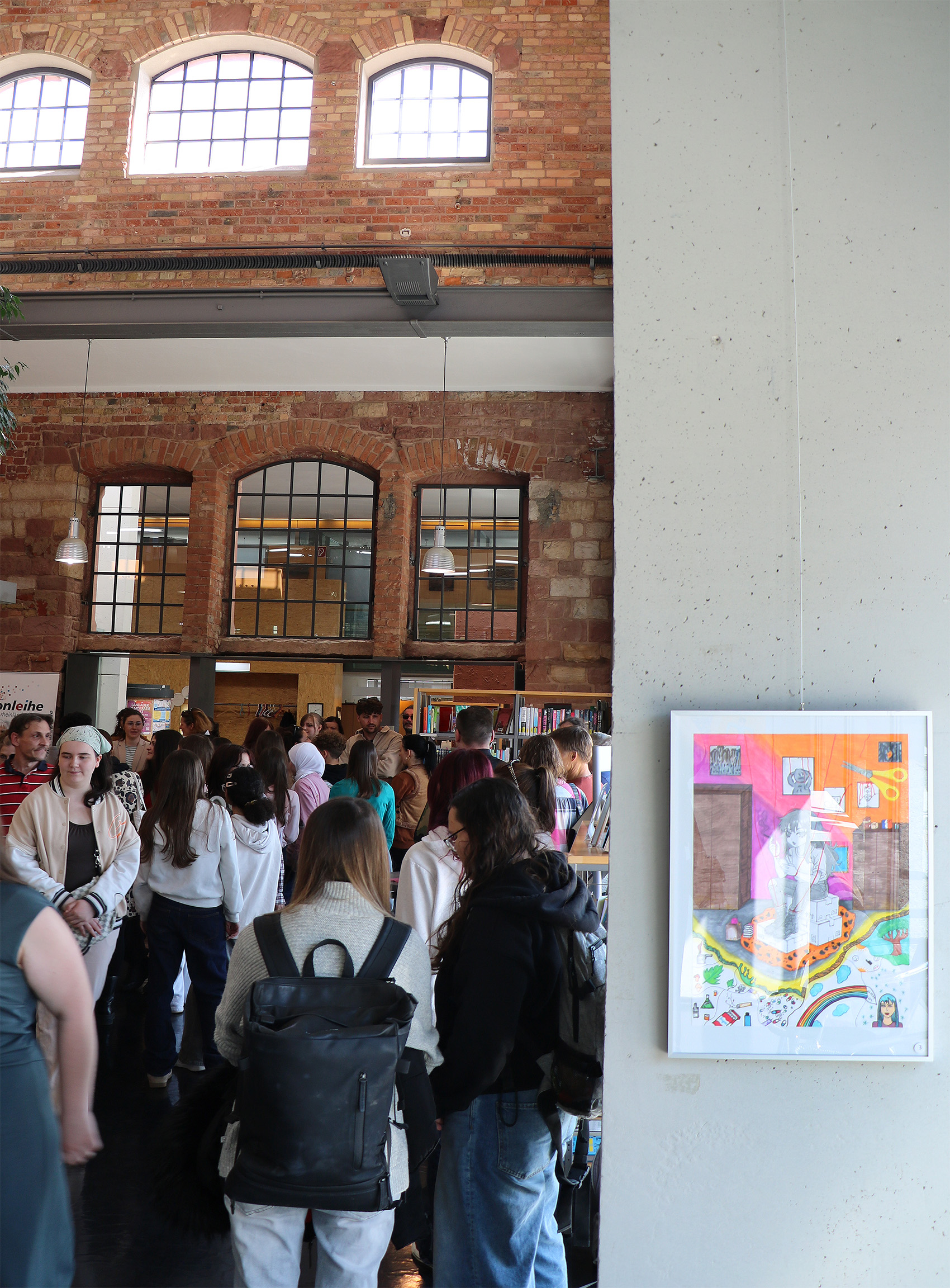 Bei der Vernissage am 15. April 2026 in der Stadtbibliothek Landau wurden die besten Arbeiten den Besucher*innen präsentiert. Unter den für die Ausstellung 20 ausgewählten Kunstwerken waren auch zwei Werke von Schülern der Klasse 8b des ETGA dabei. Frau Slater von der Diakonie Landau, eröffnete die Vernissage und bedankte sich bei allen Beteiligten sowie Unterstützenden. In diesem Rahmen wurde sich auch beim ehemaligen Kunstlehrer des ETGA, Philipp Heintz, für sein erneutes Mitwirken bedankt.