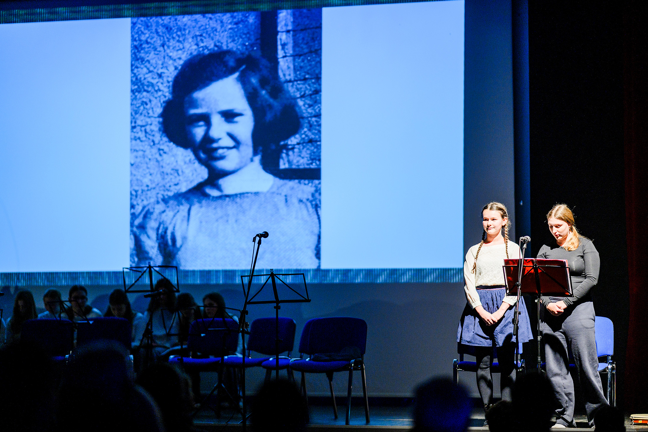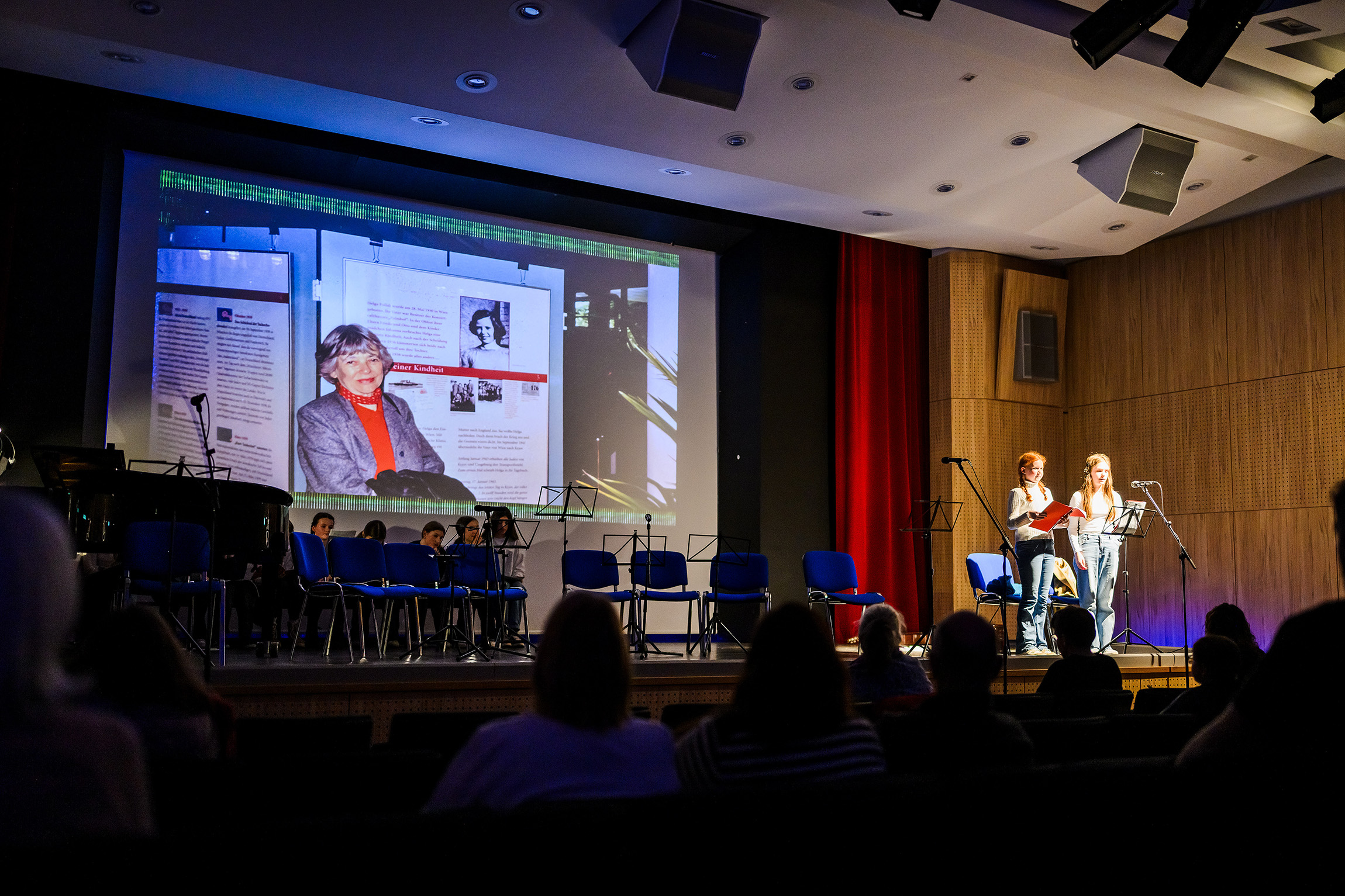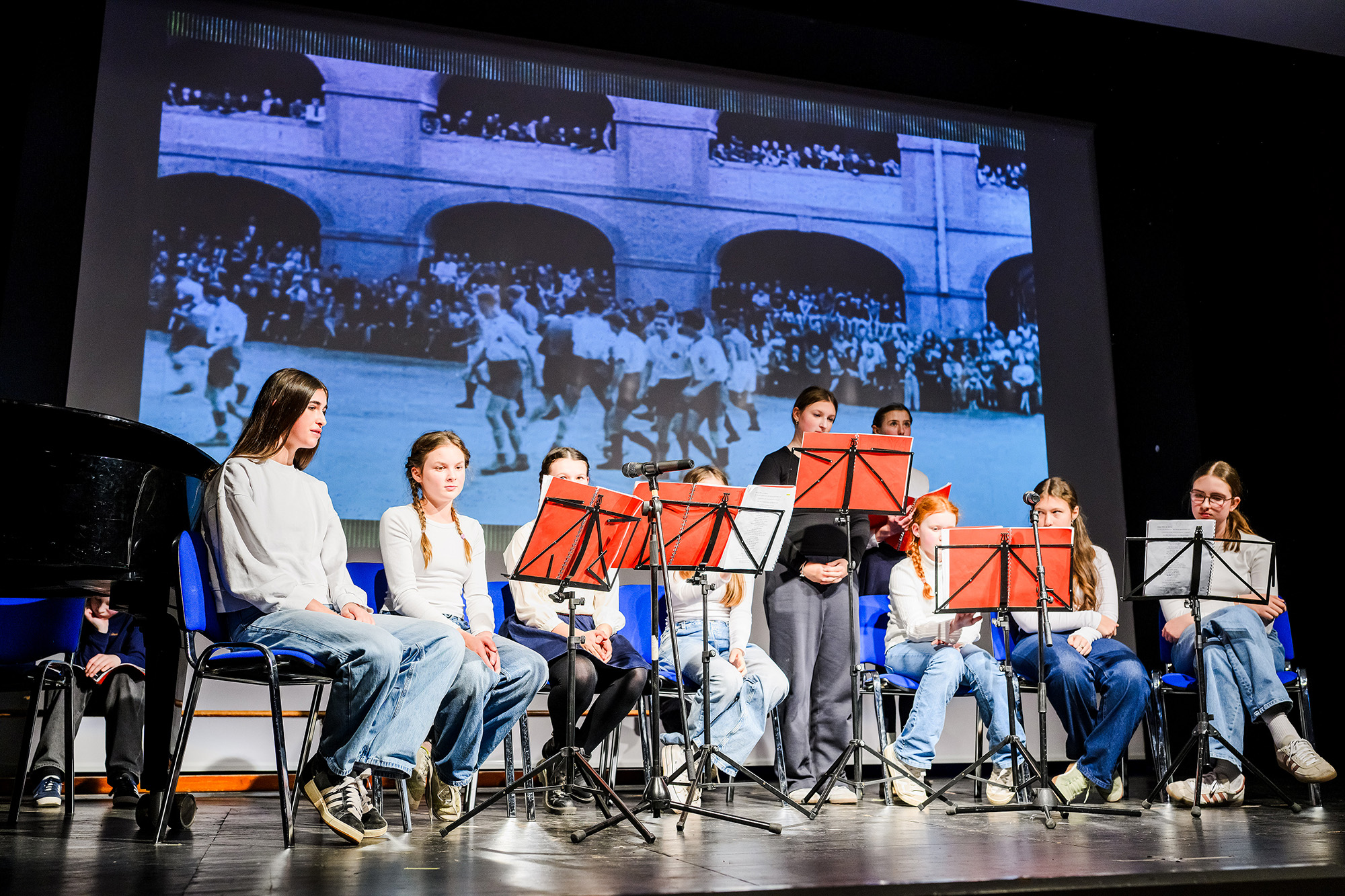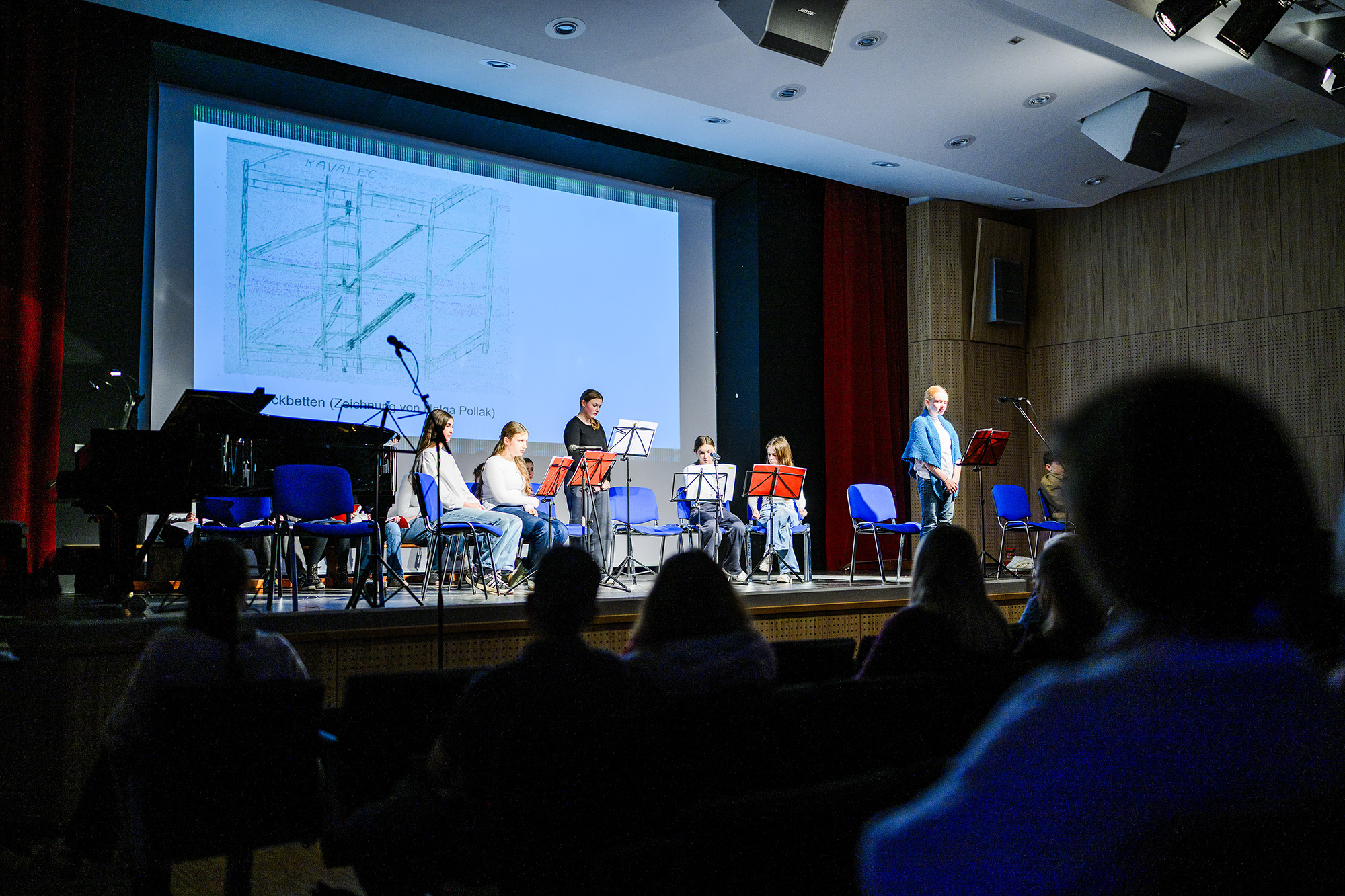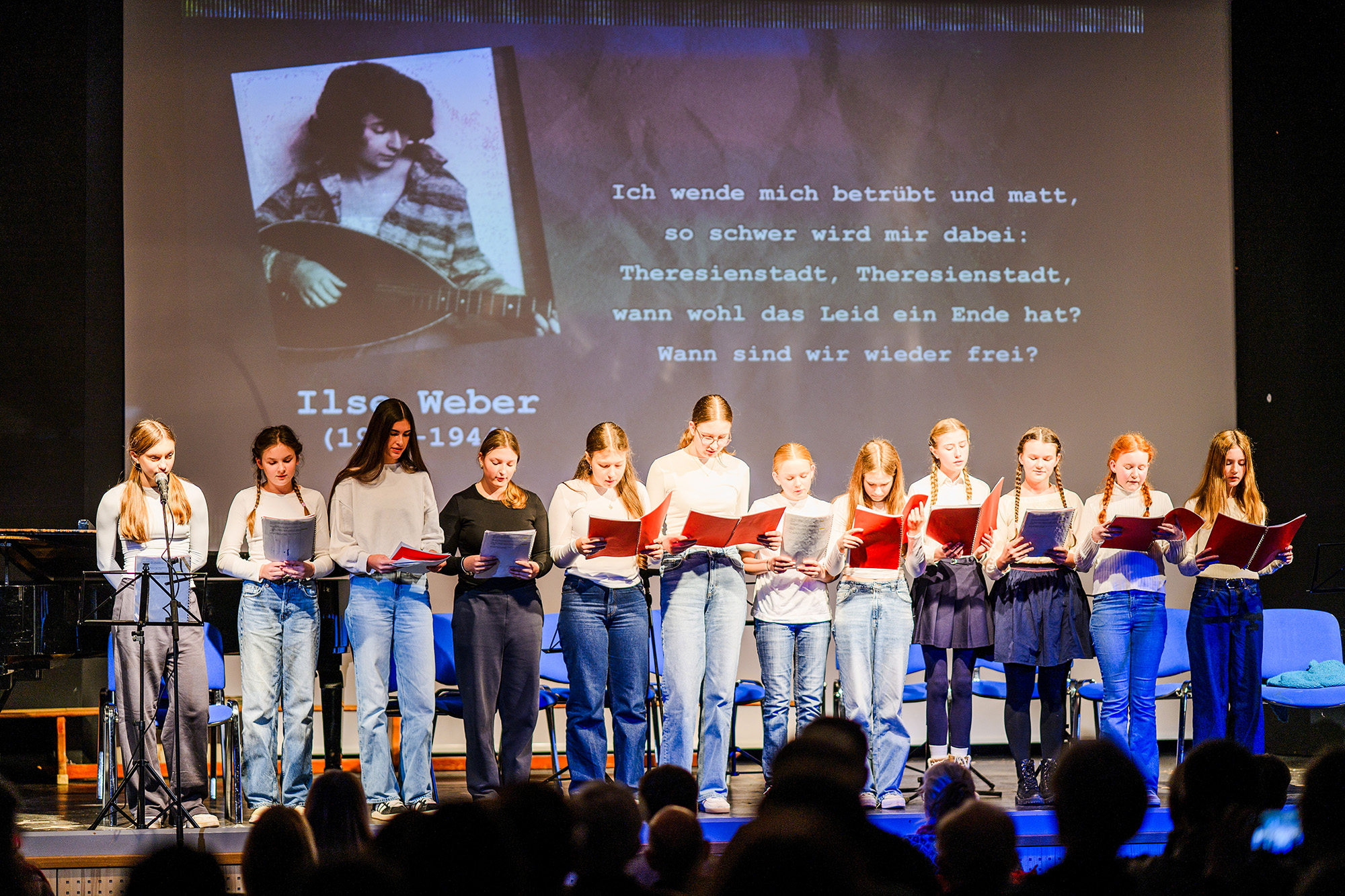 Eindrucksvoll stellten die Schülerinnen beider Schulen den Alltag und das Leben der Mädchen im Ghetto Theresienstadt dar, die in ihrem Alter waren, als sie dort interniert waren. Sie machten auch die Kraft der Freundschaft, Musik und Kunst für das Überleben im Ghetto deutlich.