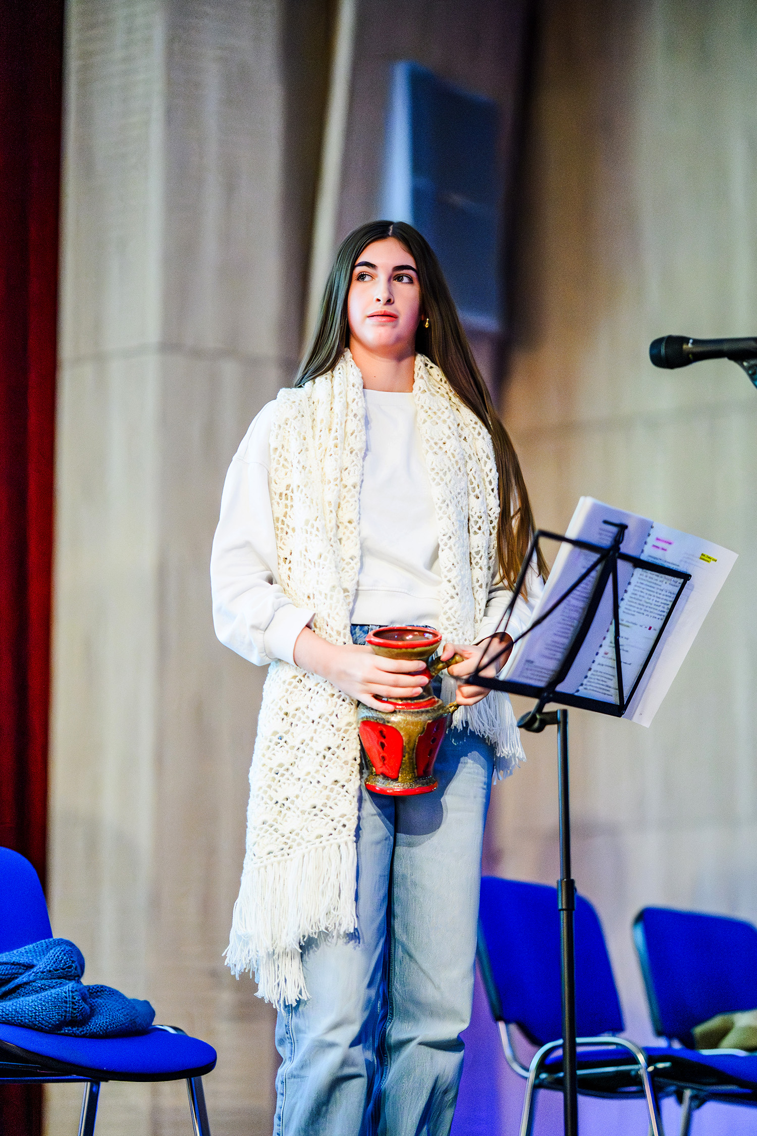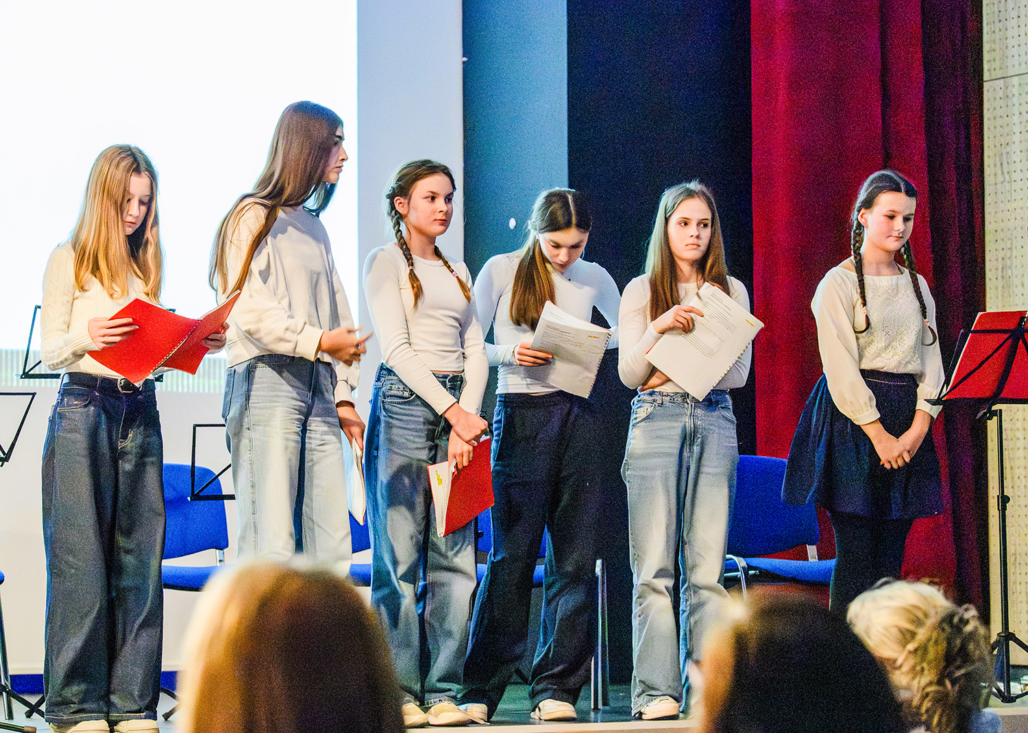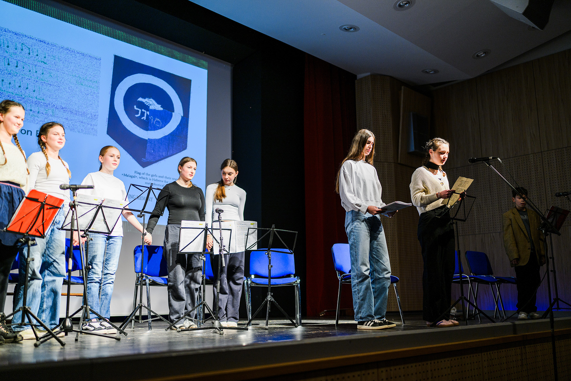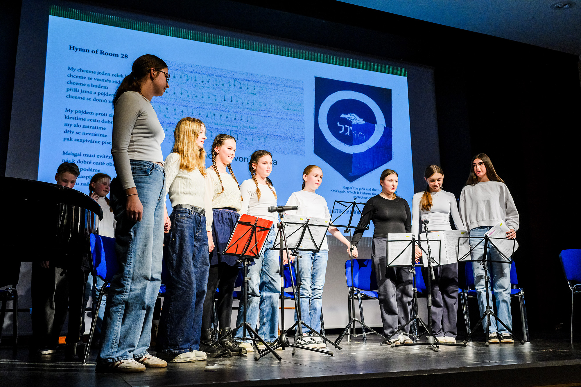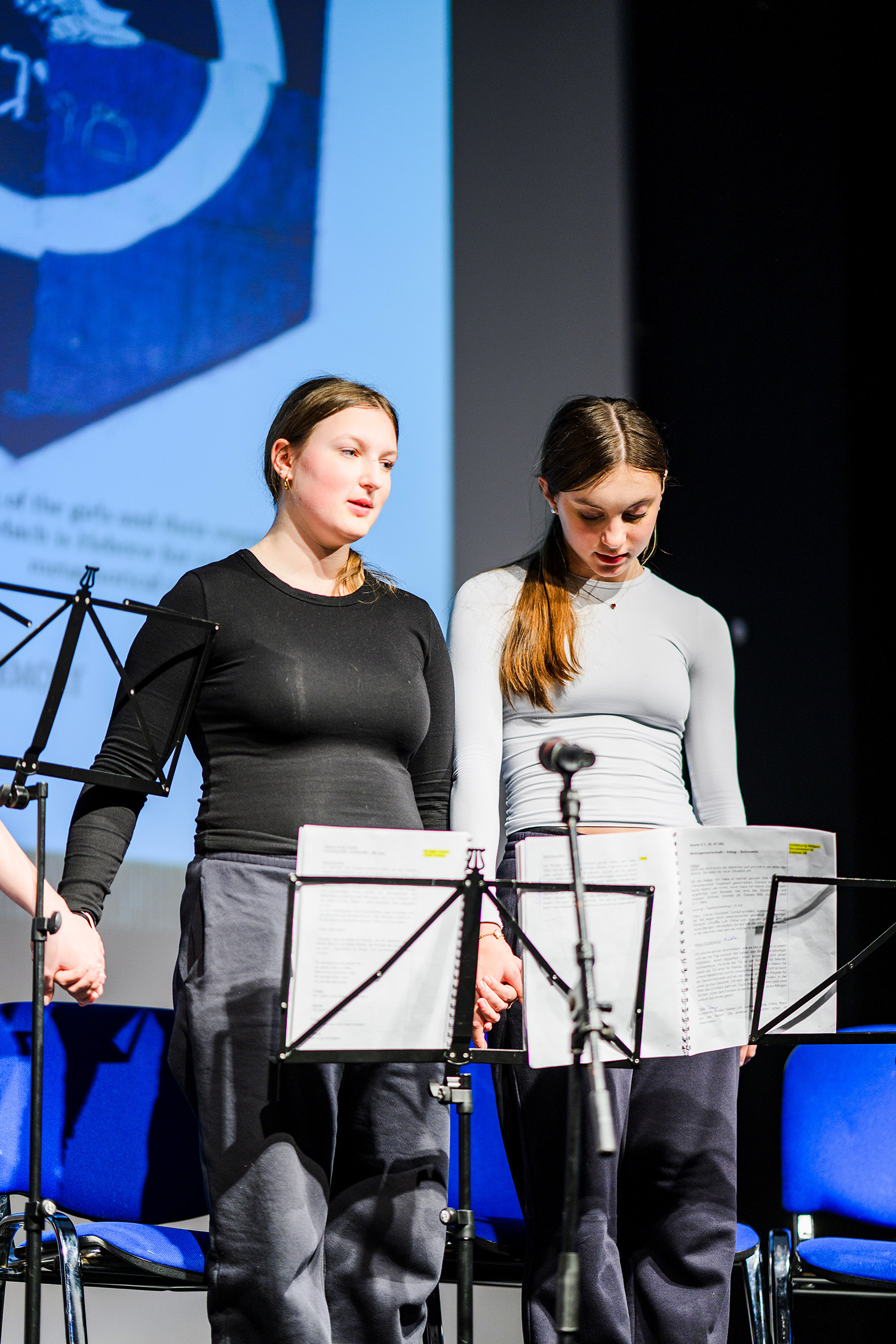 Eindrucksvoll stellten die Schülerinnen beider Schulen den Alltag und das Leben der Mädchen im Ghetto Theresienstadt dar, die in ihrem Alter waren, als sie dort interniert waren. Sie machten auch die Kraft der Freundschaft, Musik und Kunst für das Überleben im Ghetto deutlich.