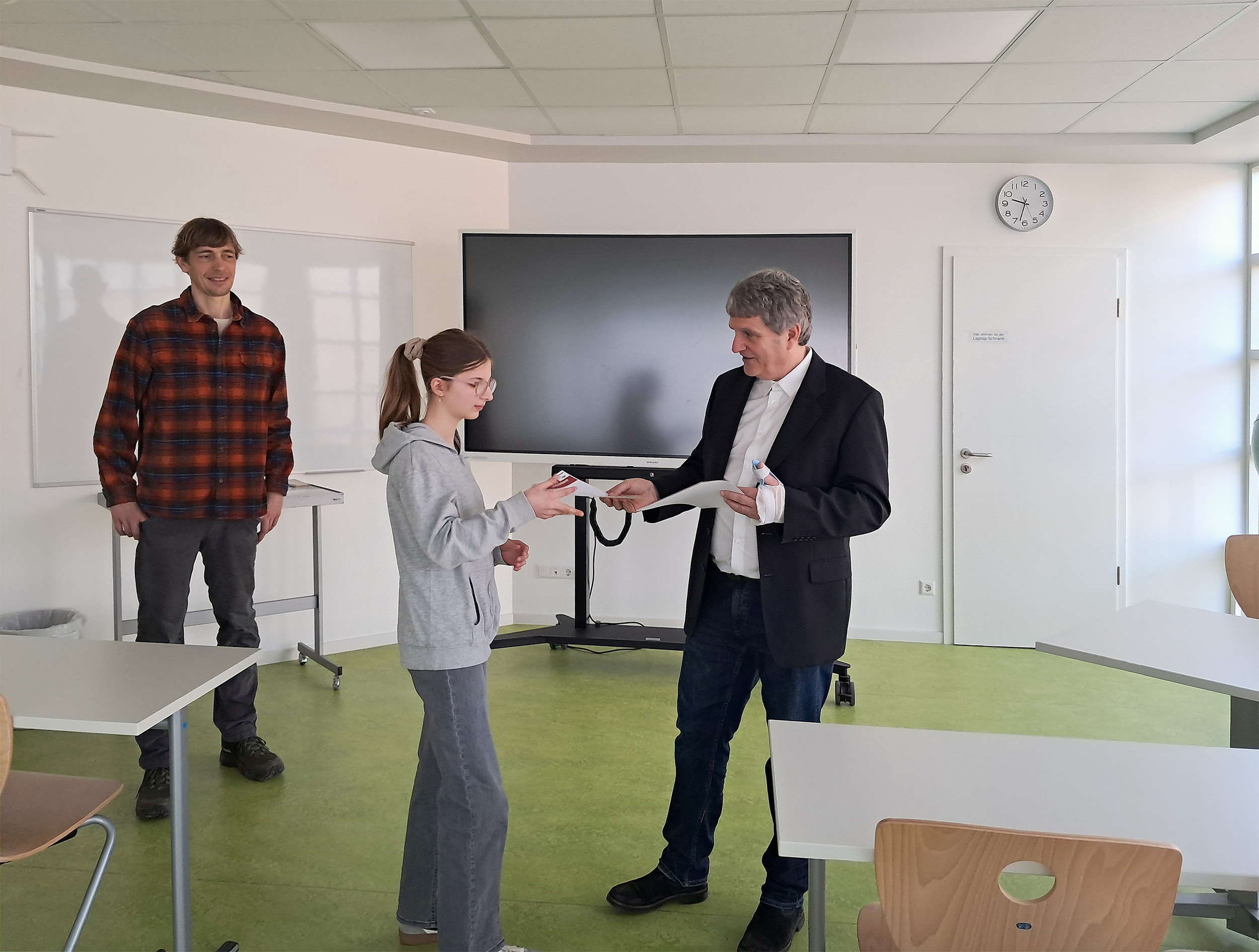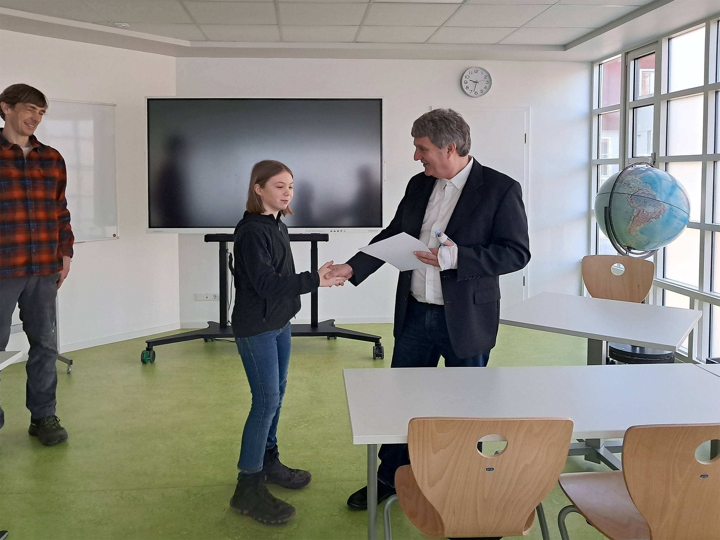 Im Rahmen einer kleinen Urkundenübergabe wurden die Teilnahmeurkunden vom Schulleiter Herrn Jung überreicht. Geehrt für ihre tolle Leistungen in der ersten Runde wurden Joshua Bick 6c, Emma Meyer 6b, Maximilian Schaaf 6a und Aliah Wolf 6b.