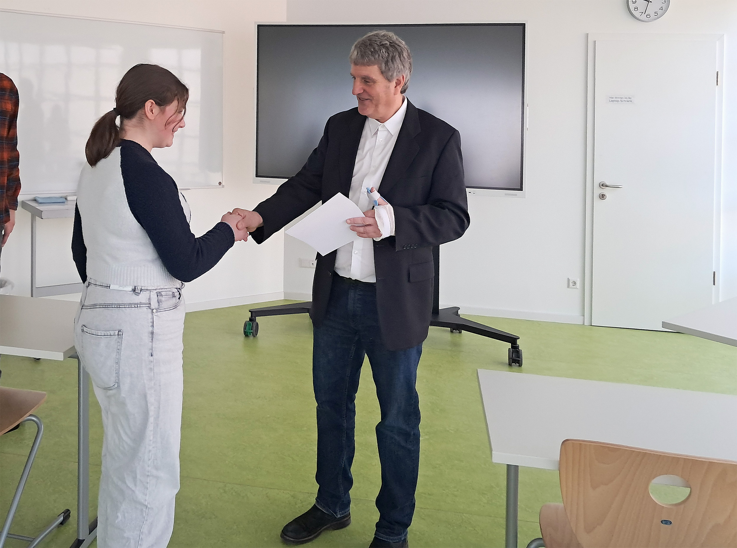 Besonders erfreulich ist, dass Joshua Bick mit seiner super Leistung in der ersten Runde sogar den Einzug in die 2. Runde geschafft hat! Dies gelang in ganz Deutschland nur noch 1050 Schüler*innen.